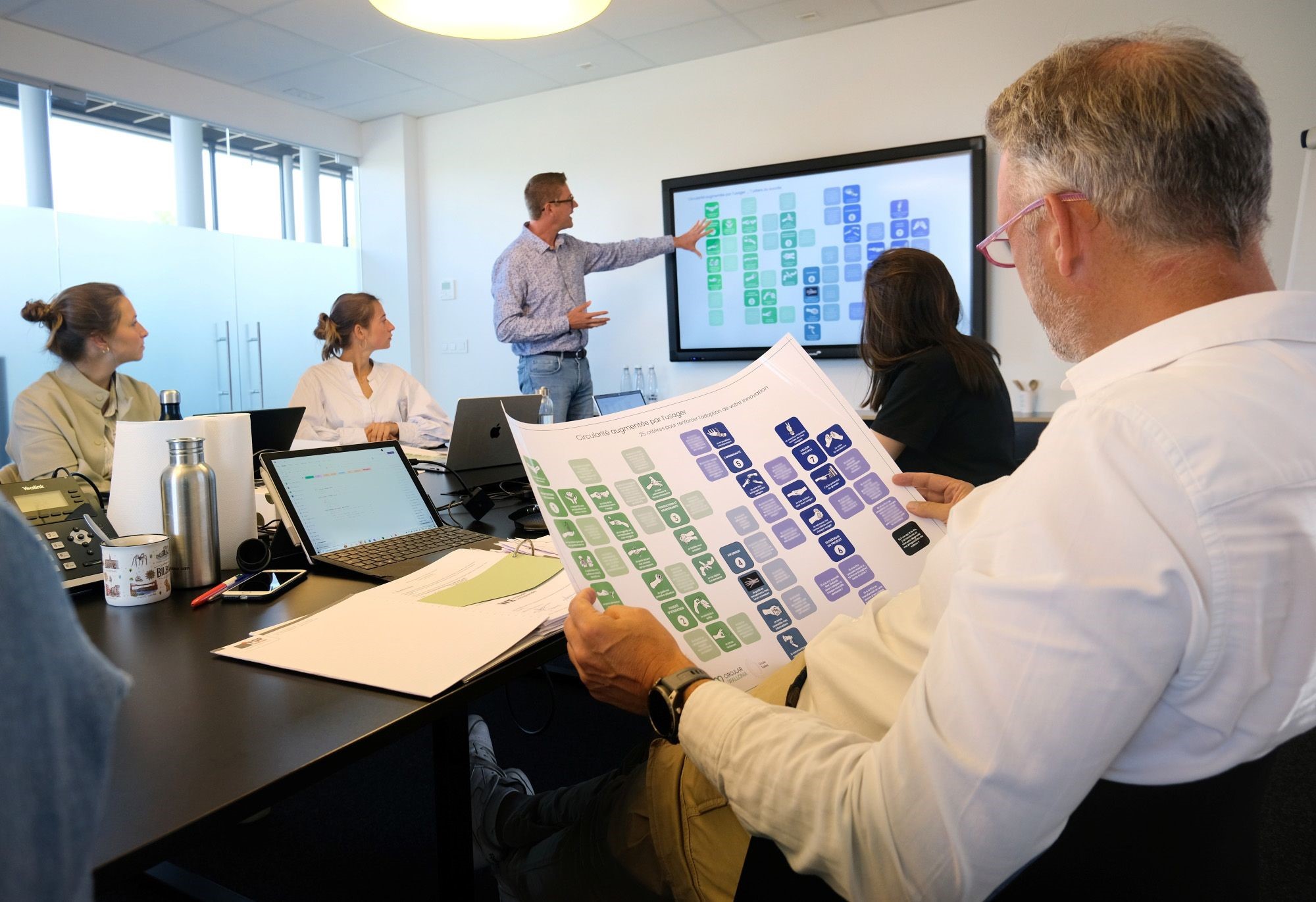 Pour ce faire, Wallonie Design se rendait dans chaque entreprise avec une équipepluridisciplinaire de trois expert·es en design, en business et en technique. Et ce, gratuitement pendant une journée.