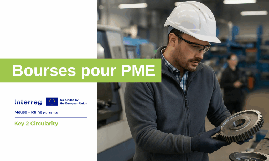 Dans le cadre du projet Interreg Meuse-Rhin Key2Circularity (K2C) est organisé un programme de bourses allant de 10.000 à 40.000€, distribuées aux PME de la région Meuse-Rhin. K2C soutient les PME manufacturières dans leur transition vers l’économie circulaire grâce à trois piliers : le réseautage transfrontalier, un système de bourses et un programme d’accompagnement sur mesure, Circular Boost.