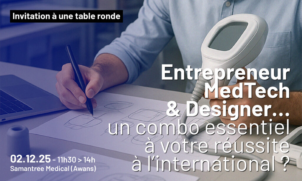 Vous développez des produits, des services, des appli dans le MedTech ? Alors participez ce mardi 2 décembre à notre table ronde dédiée à la plus-value du design dans le secteur.
